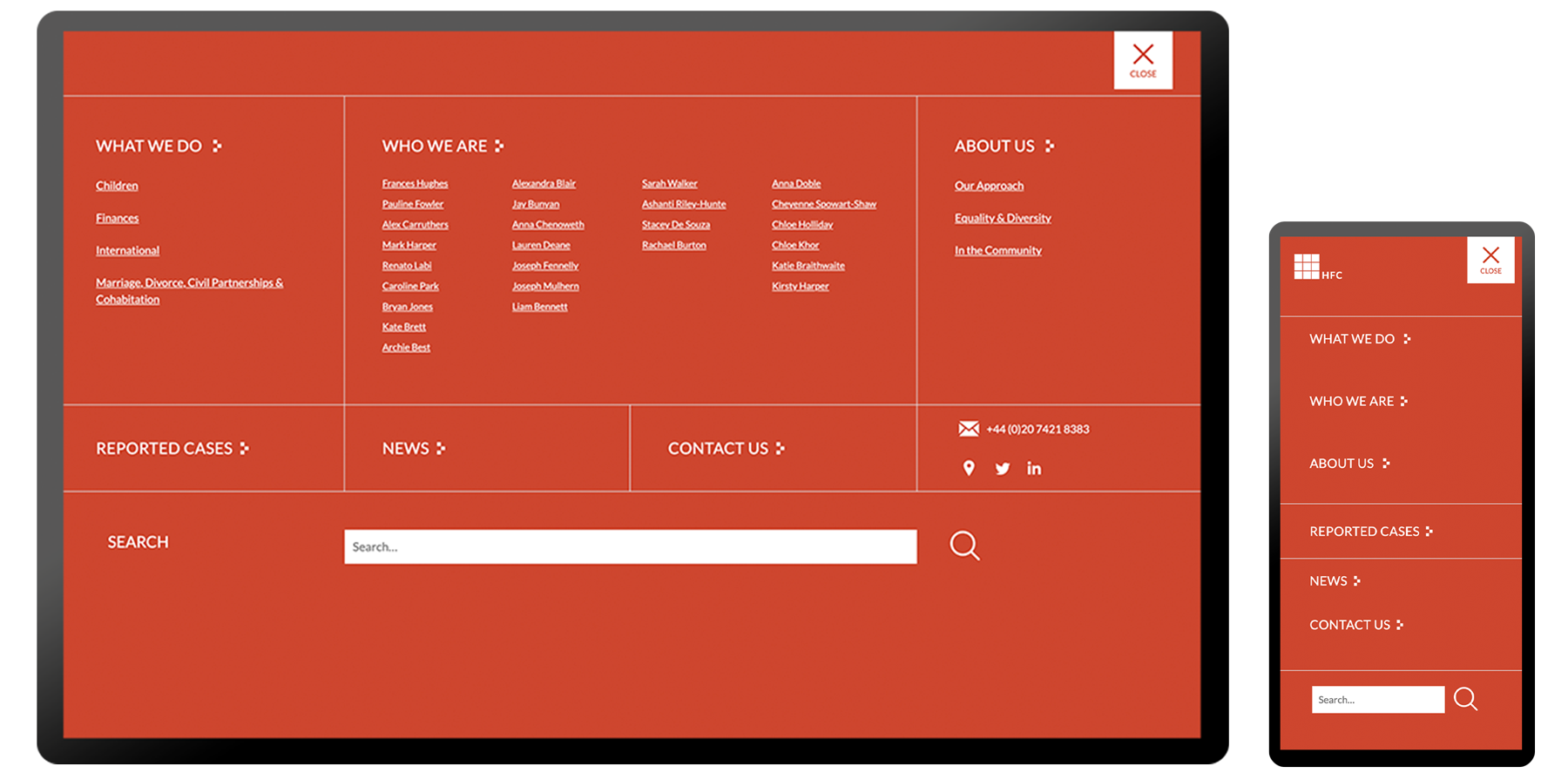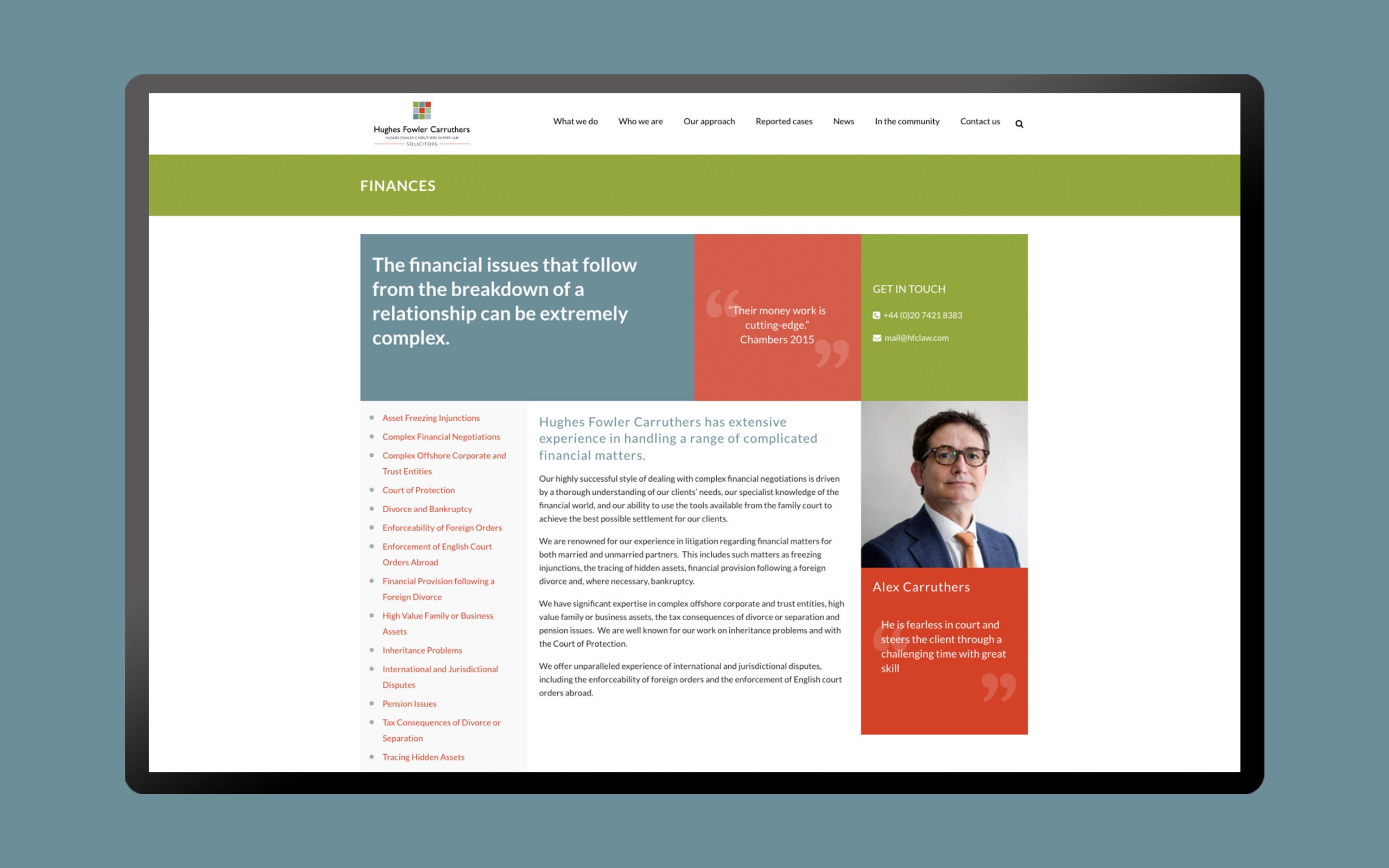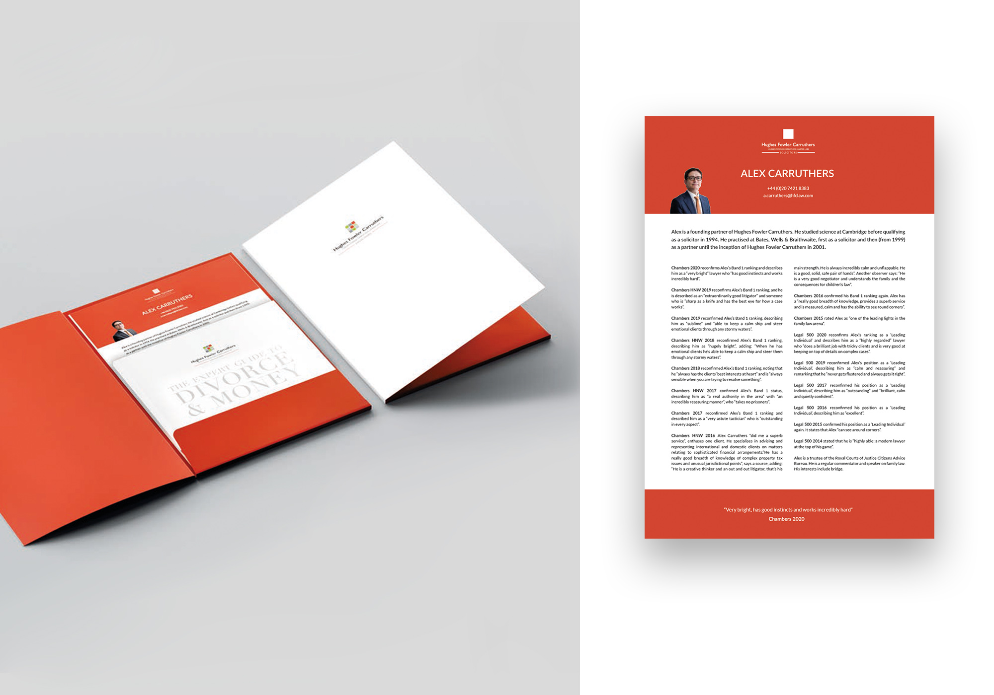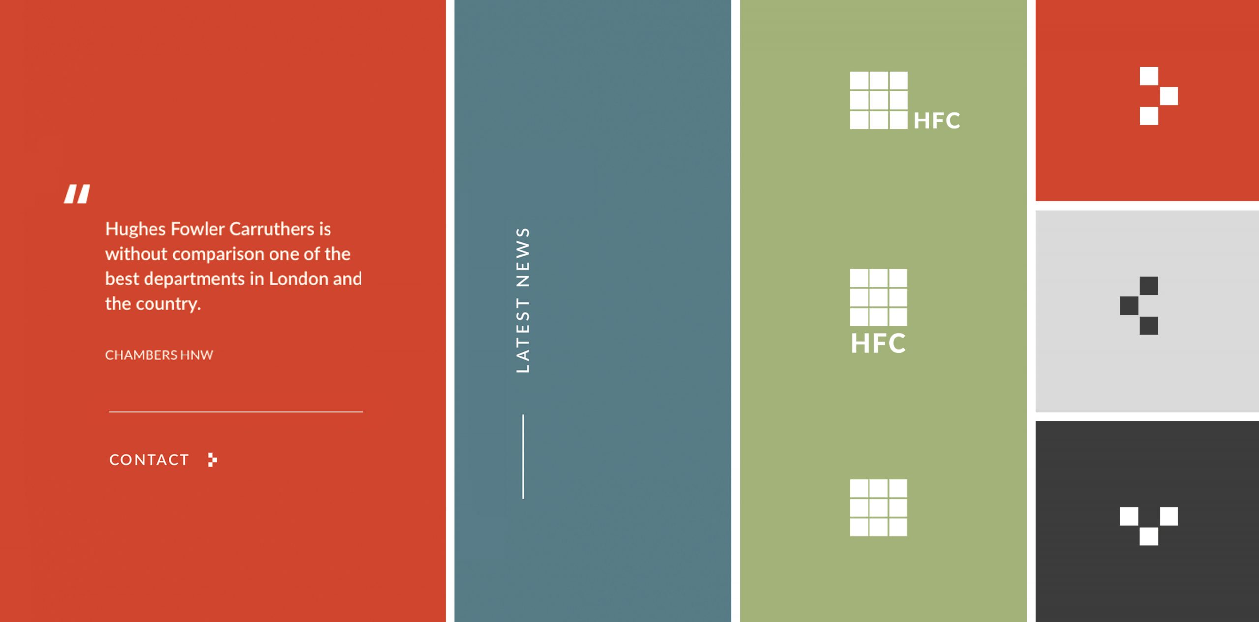 This included assigning key areas of the firm to each of the swatches to create better visual impact and hierarchy. Design assets were created using graphic elements of their logo and a split-screen or block colour style was used for web application and other branded materials.