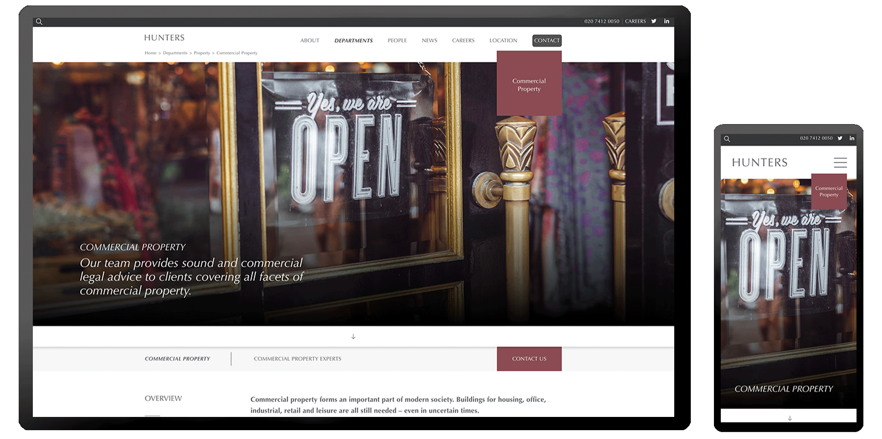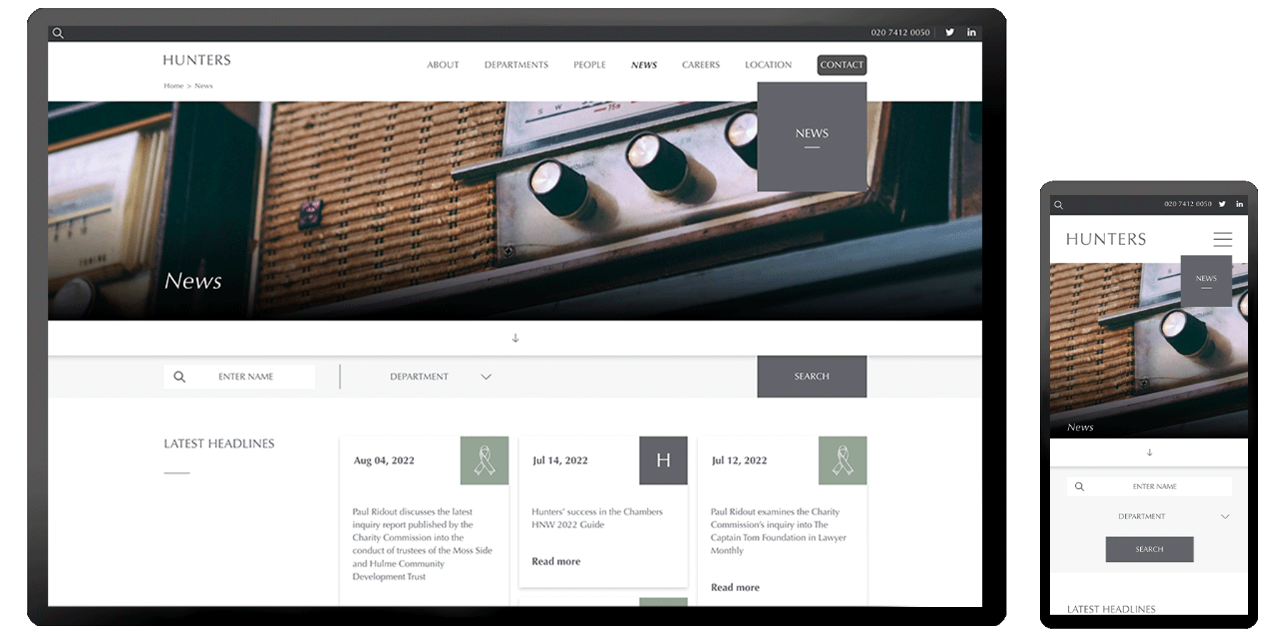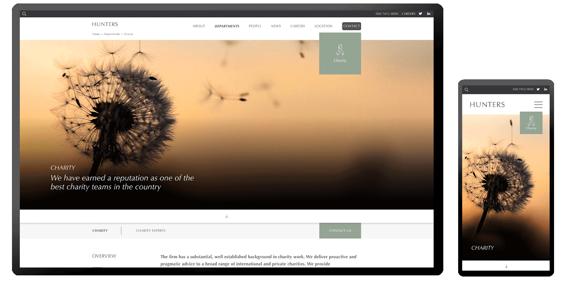 The website strategy was to highlight individual departments and develop specialist hubs for a targeted user experience.