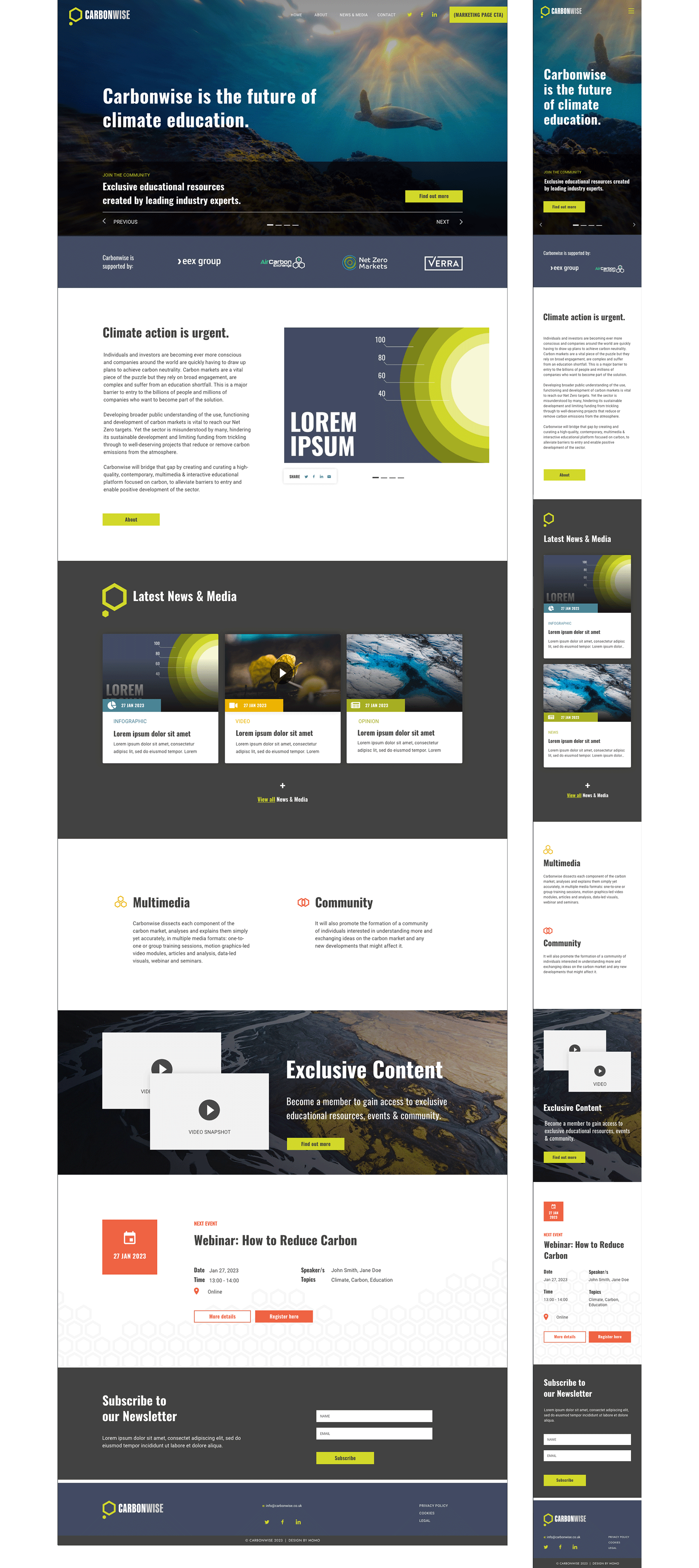 A double-meaning thought or speech bubble shape was used to capture ideas, knowledge, thoughtfulness and spreading the word about climate change. This, blended with the carbon hexagon symbol, resulted in a meaningful logo that complements the imagery and graphic style of the supporting designs. Impactful, heavy typography was chosen to reflect a “headline news” style and capture the immediate importance of sustainable education.